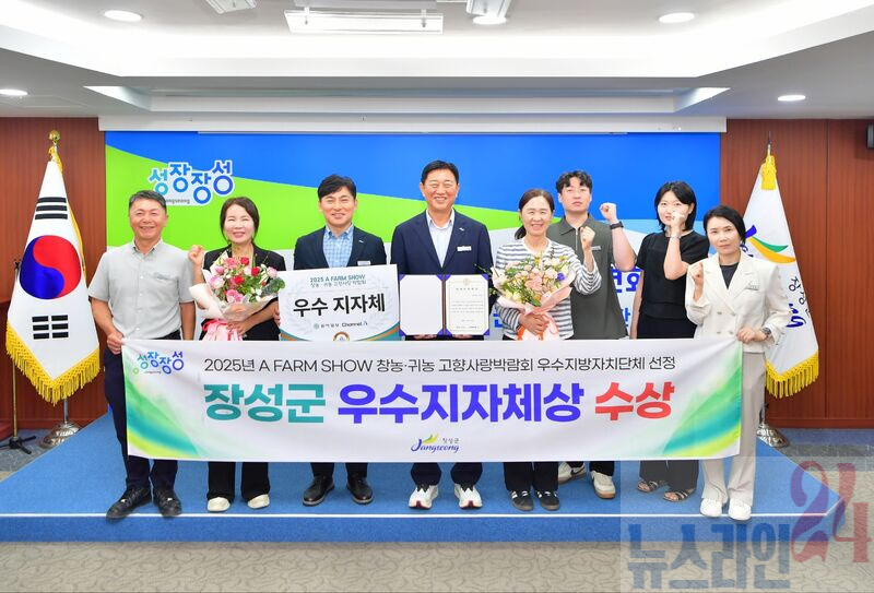 장성군이 지난 8월 29~31일 서울 ‘에이티(aT)센터’에서 열린 ‘2025년 에이팜쇼(A FARM SHOW) 창농·귀농 고향사랑박람회’에서 ‘우수지자체상’을 수상했다.