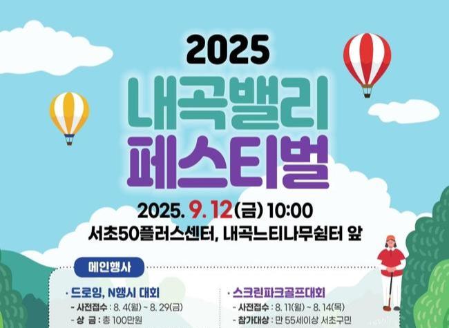 서울 서초구(구청장 전성수)는 오는 9월 12일(금), 서초50플러스센터와 내곡느티나무쉼터 앞에서 지역 주민과 함께하는 `2025년 내곡밸리 페스티벌`을 개최한다고 밝혔다.