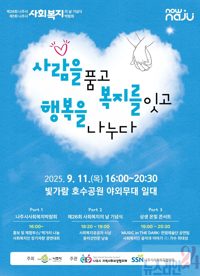 전라남도 나주시가 제26회 사회복지의 날(9월 7일)을 맞아 오는 11일 빛가람동 호수공원 야외무대에서 제1회 사회복지박람회를 개최한다.