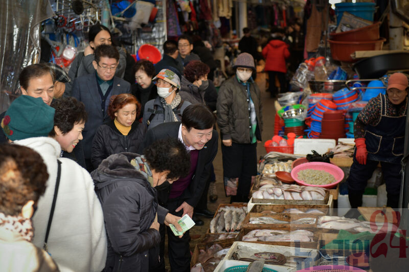 정기명 여수시장이 설을 앞두고 지난 22일 관내 전통시장을 방문해 명절 성수품 물가 등 민생경제를 살폈다.
