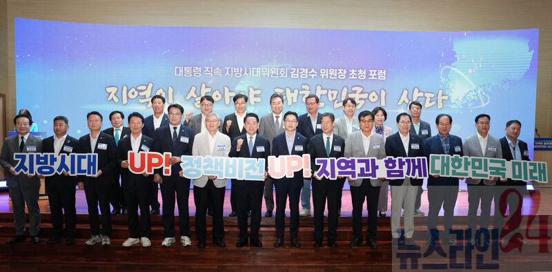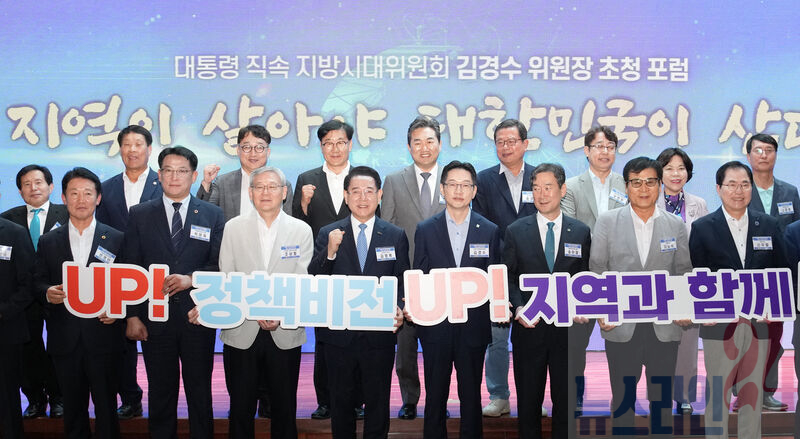 김영록 전라남도지사가 9일 오후 국립목포대 글로컬스타트업센터에서 열린 김경수 지방시대위원장 초청 포럼에서 주요 내빈들과 기념촬영을 하고 있다.