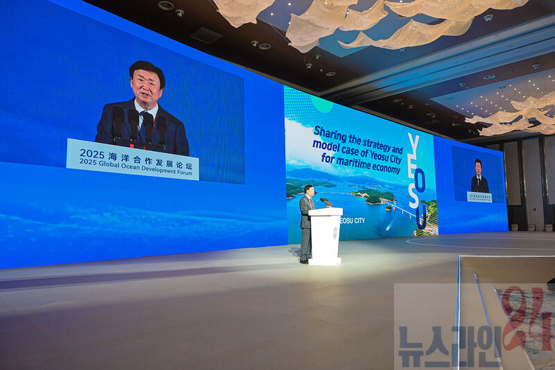 정기명 여수시장이 지난 8일 중국 칭다오에서 열린 ‘2025년 산둥성 국제해양발전포럼’에 초청받아 주제 발표자로 나서 2026여수세계섬박람회를 소개하고 국제적 관심을 이끌어냈다.