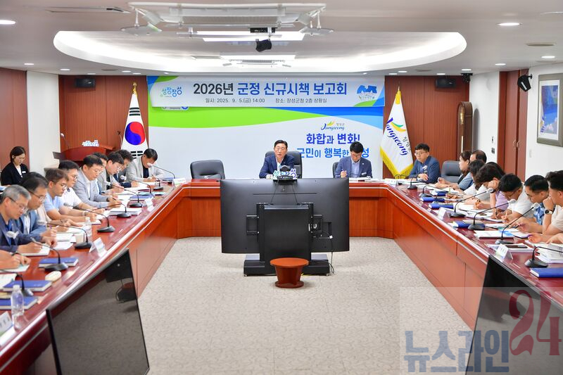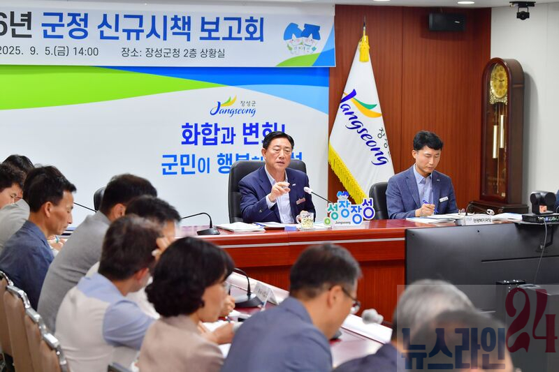 장성군이 지난 5일 군청 상황실에서 ‘2026년 군정 신규시책 보고회’를 가졌다. ‘지속 가능 성장’, ‘군민 행복’, ‘힐링 관광’, ‘스마트 농업’을 견인할 신규·공모사업 145건, 5276억 원 규모 시책이 보고됐다.