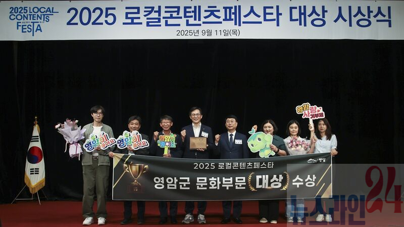 영암군이 11일 광주 호반서밋광주 빌딩에서 열린 KBC광주방송의 ‘2025 로컬콘텐츠페스타’에서 문화 부문 대상을 받았다.