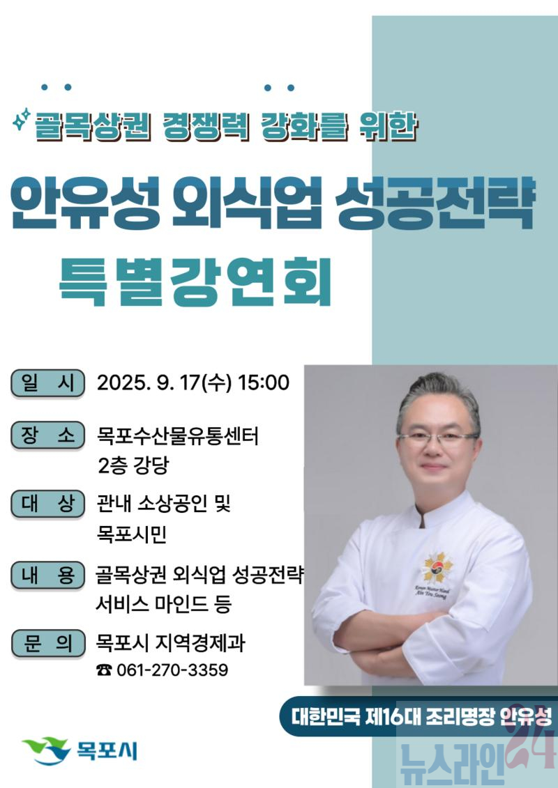 목포시는 골목상권의 경쟁력 강화를 위해 ‘대한민국 제16대 조리명장 안유성’을 초청, 특별강연회를 연다.