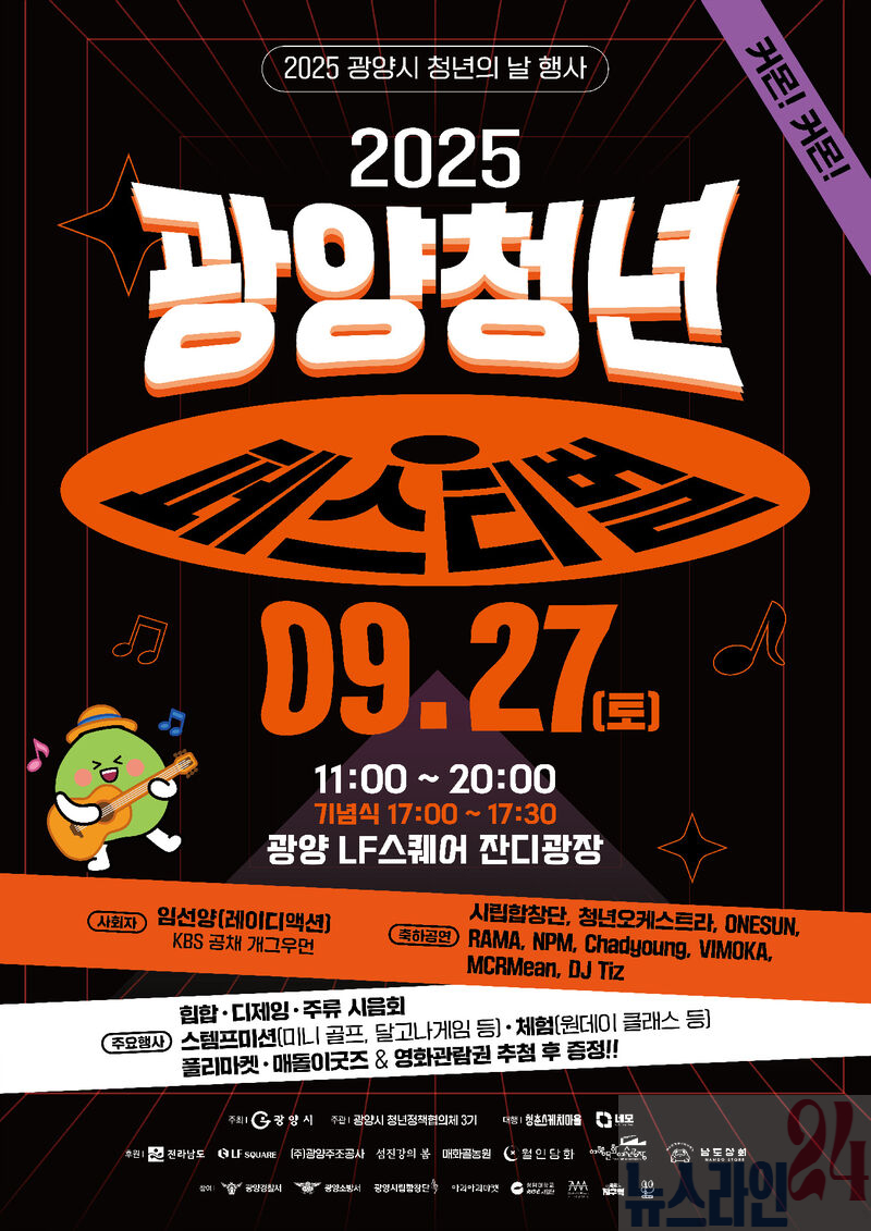 광양시는 ‘2025년 청년의 날’을 기념해 오는 9월 27일 오전 11시부터 20시까지 LF스퀘어 잔디광장에서 ‘2025년 광양 청년 페스티벌’을 개최한다고 밝혔다.