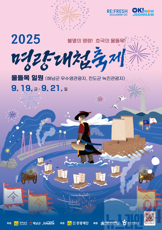 전라남도는 2025년 명량대첩축제가 오는 19일부터 21일까지 3일간 해남 우수영관광지와 진도 녹진관광지 일원에서 성대하게 개최된다고 밝혔다.