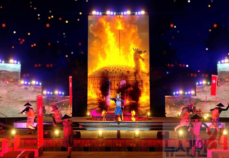 특히 주무대는 국내 최초로 판옥선 모양의 무빙스테이지를 구성, 19~20일 두 차례 명량해전을 주제로 디지털 액션활극 공연을 선보인다. 국내 최대 규모 회전 리프트, 화포와 불꽃·라인로켓 연출을 활용해 당시 명량해전을 스펙타클(Spectacle)한 미디어로 보여주며 관람객에게 박진감을 선사한다.