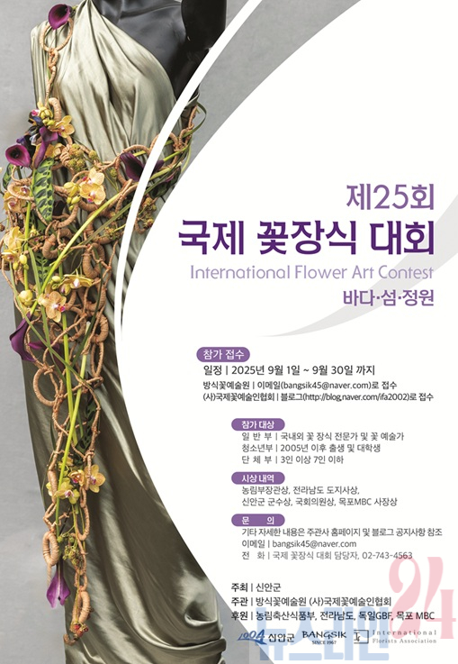 대한민국 대표 해양관광도시 신안군에서 전통과 역사를 자랑하는 ‘제25회 국제꽃장식대회’가 오는 10월 17일부터 19일까지 3일간 1004섬 분재정원에서 개최된다.