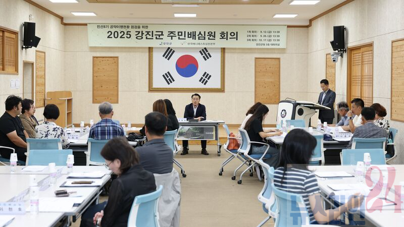 강진군이 민선8기 공약 이행 상황을 점검하기 위한 ‘주민배심원 1차 회의’를 지난 12일 강진군청 대회의실에 개최했다.