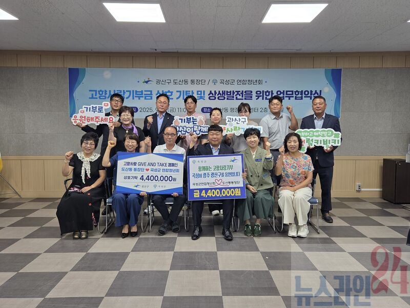 곡성군(군수 조상래)은 지난 12일 광주 광산구 도산동 행정복지센터에서 광산구 도산동 통장단과 전라남도 곡성군연합청년회가 「고향사랑기부제 활성화를 위한 상생 협약」을 체결했다고 15일 밝혔다.