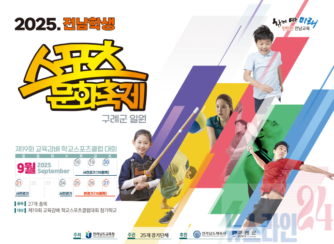 전라남도교육청(교육감 김대중)은 18부터 27일까지 2주간 구례군 일원에서 ‘2025 전남학생스포츠문화축제’를 개최한다고 밝혔다.
