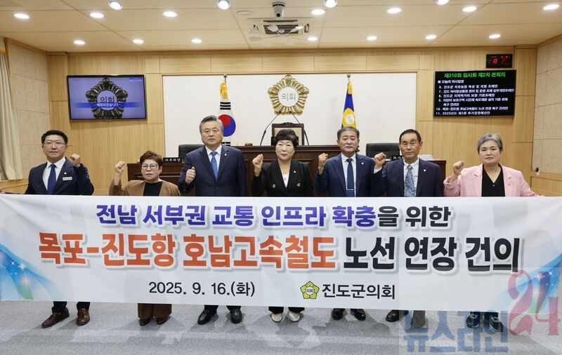 진도군의회(의장 박금례)는 9월 16일에 열린 제310회 진도군의회 임시회에서 「목포-진도항 호남고속철도 노선 연장 건의안」이 채택했다고 밝혔다.