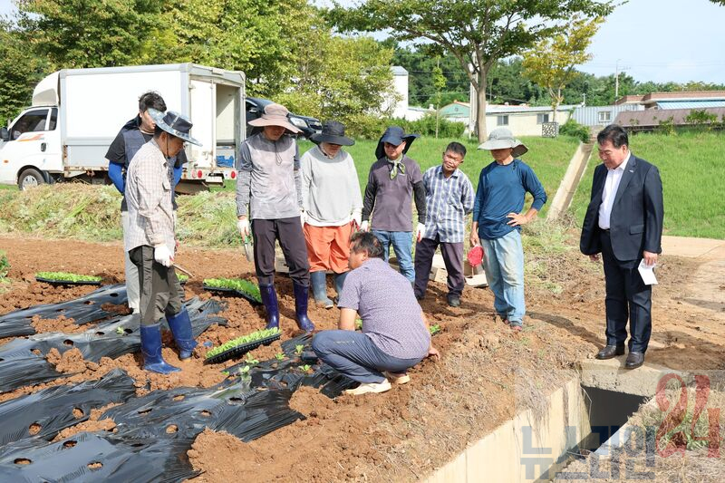 이번 교육은 농업회사법인 농바름 강행원 대표의 강의로 진행됐으며 교육생들은 약 330㎡(100평) 규모의 노지 영농실습장에서 배추 파종과 정식, 관리 요령 등을 실습했다.