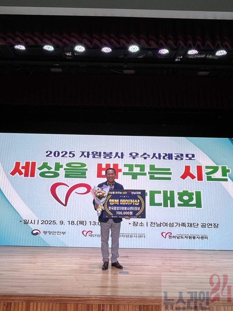 전남 무안군(군수 김산)은 지난 18일 전남여성가족재단에서 개최된 ‘2025 세상을 바꾸는 시간V 전남대회’에서 우수상인 한국중앙자원봉사센터장상을 수상했다.