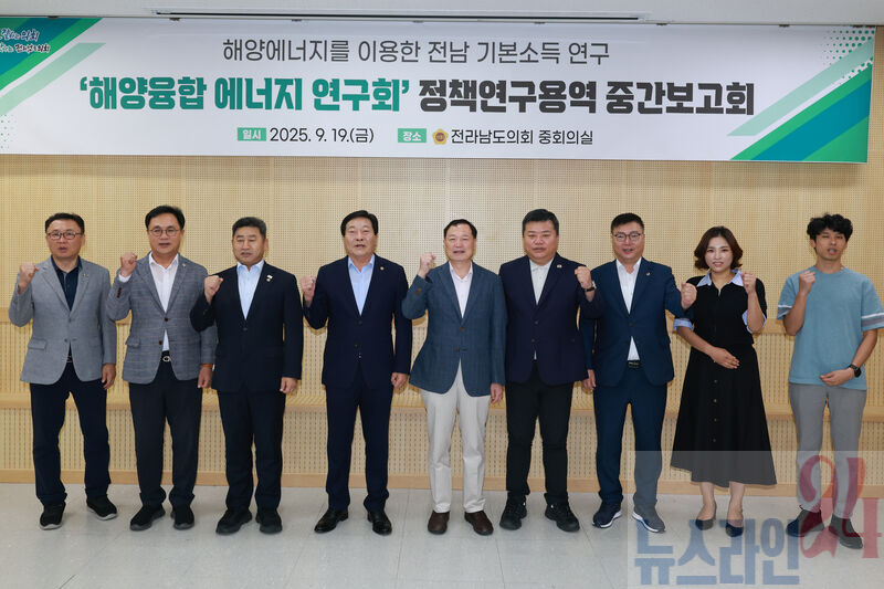 전남도의회 의원연구단체인 ‘해양융합 에너지 연구회(대표의원 정길수)’는 지난 9월 19일 도의회 초의실에서 ‘해양에너지를 이용한 기본소득 연구’ 용역 중간 보고회를 개최했다.
