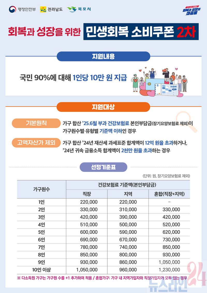 목포시가 9월 22일부터 민생회복 소비쿠폰 2차 지급을 시작한다.