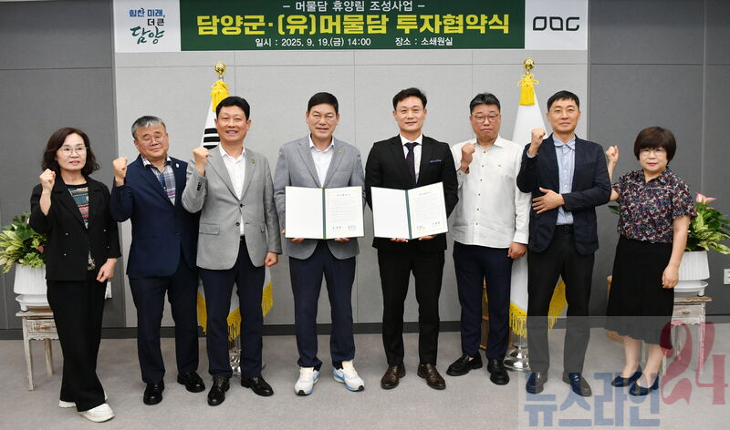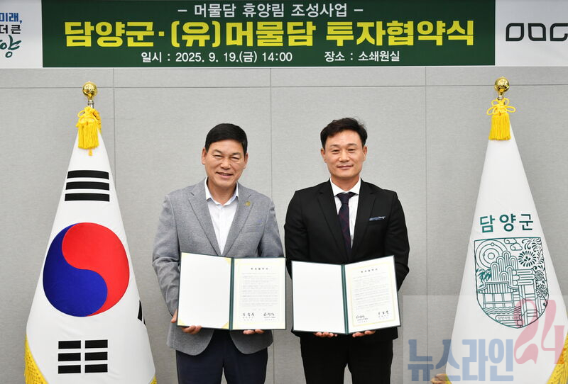 담양군(군수 정철원)은 (유)머물담과 금성면 원율리 일원에 ‘머물담 휴양림 조성사업’을 추진하기 위한 투자협약을 체결했다고 22일 밝혔다.