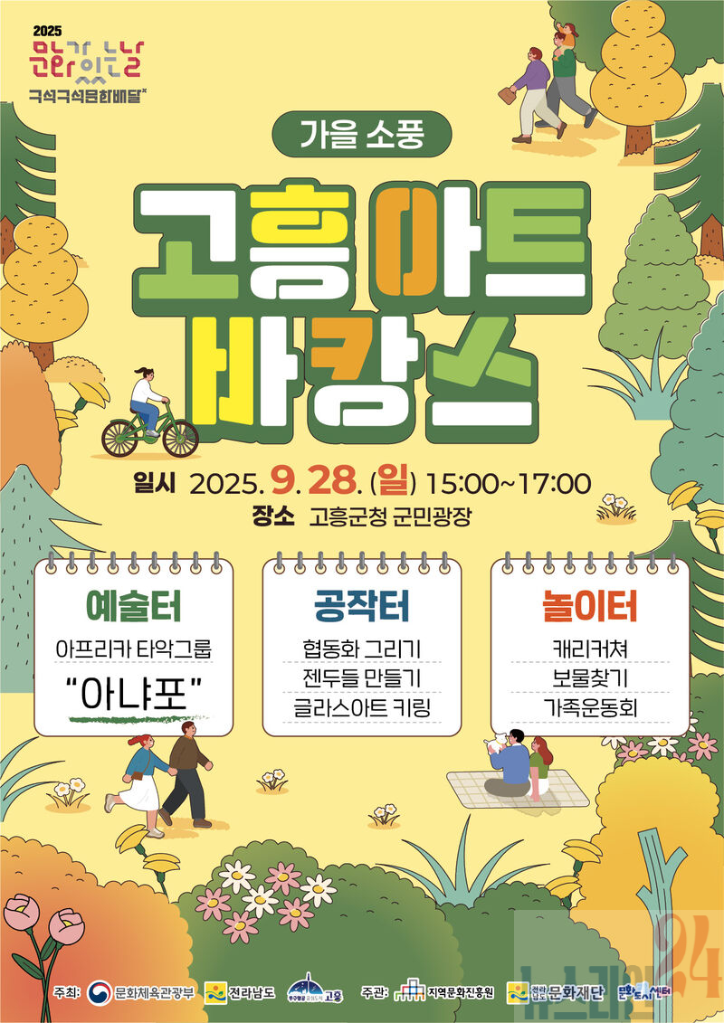 이번 ‘고흥아트바캉스’는 ‘가을 소풍’을 주제로, 군민 누구나 즐길 수 있는 다양한 공연과 체험 프로그램으로 마련된다.