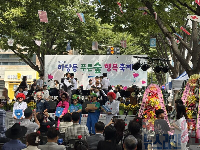하당동은 지난 19일 비파 2차~3차 아파트 사이에서 개최한 ‘제16회 하당동 푸른 숲 행복 축제’가 1,000여 명의 주민이 참여한 가운데 성황리에 막을 내렸다고 밝혔다.