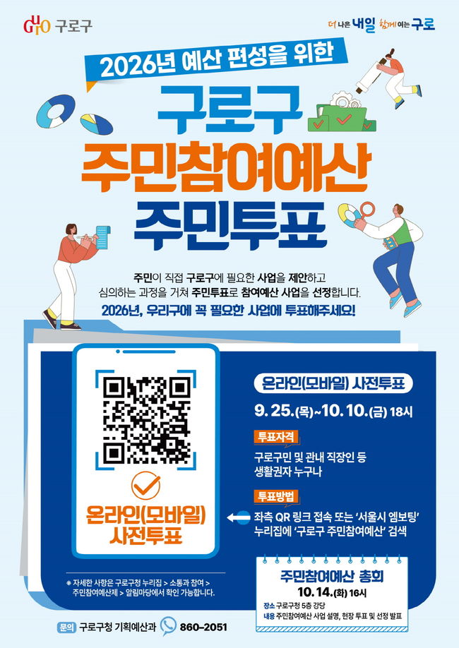 구로구가 주민이 직접 예산 편성 과정에 참여하는 ‘2026년 주민참여예산 사업’ 선정을 위한 온라인 투표를 진행한다.