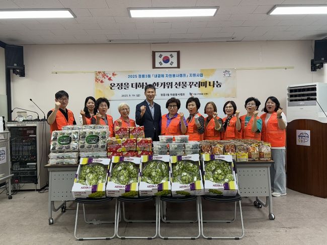 이어 정릉3동 자원봉사캠프(캠프장 정필남)는 다가오는 추석을 맞아 *‘추석 선물꾸러미 나눔 행사’*를 열고 관내 취약계층 20가구를 직접 방문해 정성껏 마련한 선물을 전달했다. 자원봉사자들은 선물과 함께 안부를 확인하며 따뜻한 위로와 관심을 전했고, 주민들은 오랜만의 따뜻한 만남에 큰 기쁨과 위로를 느꼈다.