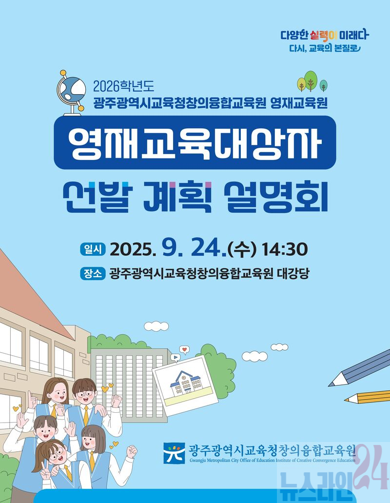 이를 위해 광주창의융합교육원은 24일 본원 대강당에서 진영 원장, 영재 선발 업무 담당자 등이 참석한 가운데 ‘2026학년도 영재교육대상자 선발 계획 설명회’를 개최했다.