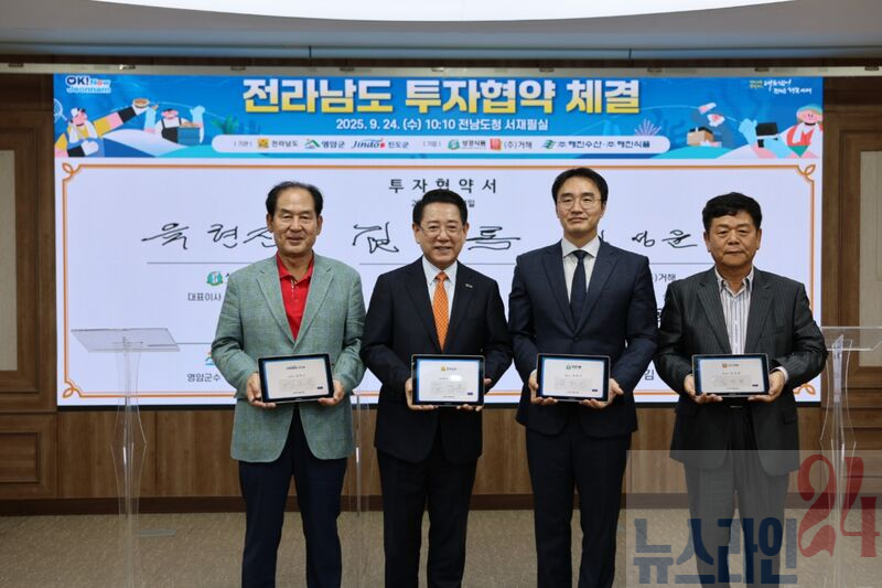 진도군과 전라남도는 24일, ‘지도표 성경김’으로 유명한 ㈜성경식품, ㈜거해와 약 500억 원에 달하는 투자협약을 체결했다고 밝혔다.