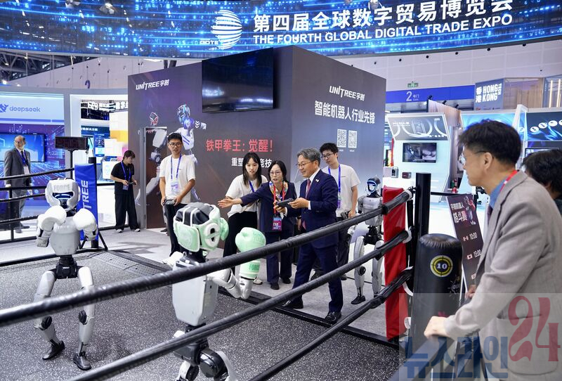 강 시장은 이날 딥로보틱스 등 중국 육소룡 기업 6개의 홍보부스를 모두 찾아 혁신기술을 살펴봤다.