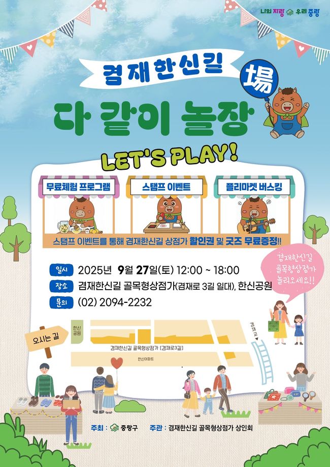 오후 2시부터는 ‘중랑 아티스트’ 4개 팀이 참여하는 버스킹 공연과 레크리에이션이 이어져 현장의 분위기를 한층 끌어올릴 예정이다.
