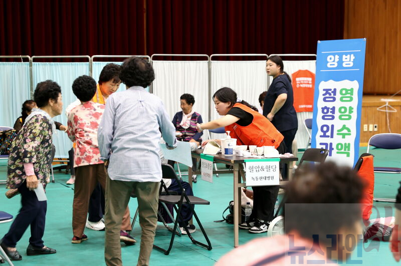 이번 검진은 김일기념체육관에서 금산면 주민 300여 명이 양방 진료, 치과, 안과 등 다양한 의료서비스를 무료로 받았다.