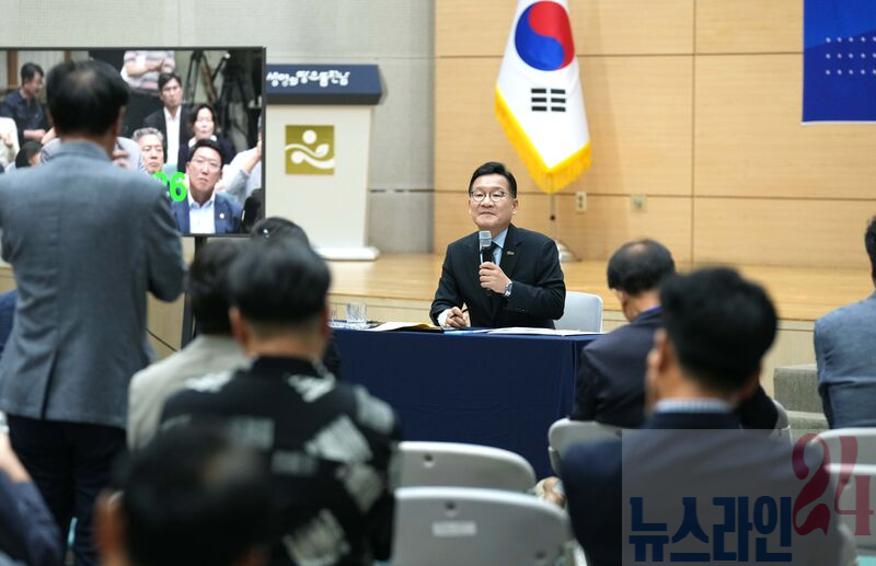 강위원 전라남도 경제부지사가 27일 도청 왕인실에서 전남 경제 타운홀 미팅 ‘바란’을 주재하며, 전남 미래에 대한 제안을 청취하고 있다.