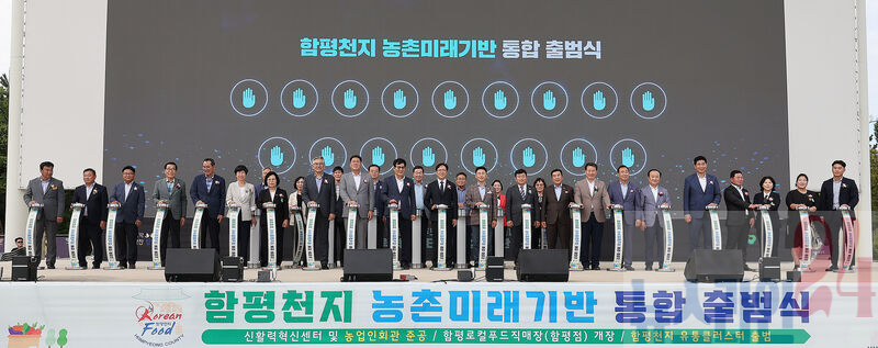 출범식은 생산부터 유통까지 아우르는 함평군 농업의 미래 성장 기반을 선포하는 자리로, 신활력혁신센터 및 농업인회관 준공식과 함평로컬푸드직매장(함평점) 개장식, 함평천지 유통클러스터 출범식을 통합해 진행됐다.