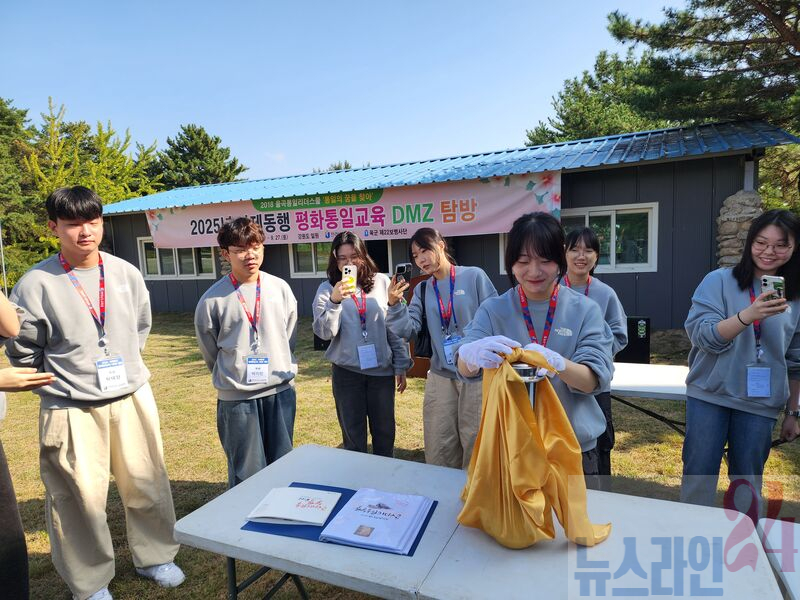 전라남도교육청(교육감 김대중)은 26~27일 강원도 고성군 일원에서 ‘사제동행 평화통일 DMZ탐방’을 운영했다. 이번 DMZ탐방에는 2018년 ‘율곡통일리더스쿨’ 프로그램에 참여했던 학생과 운영추진단 20여 명이 함께해, 7년 전 타임캡슐을 묻었던 율곡부대를 다시 찾았다.