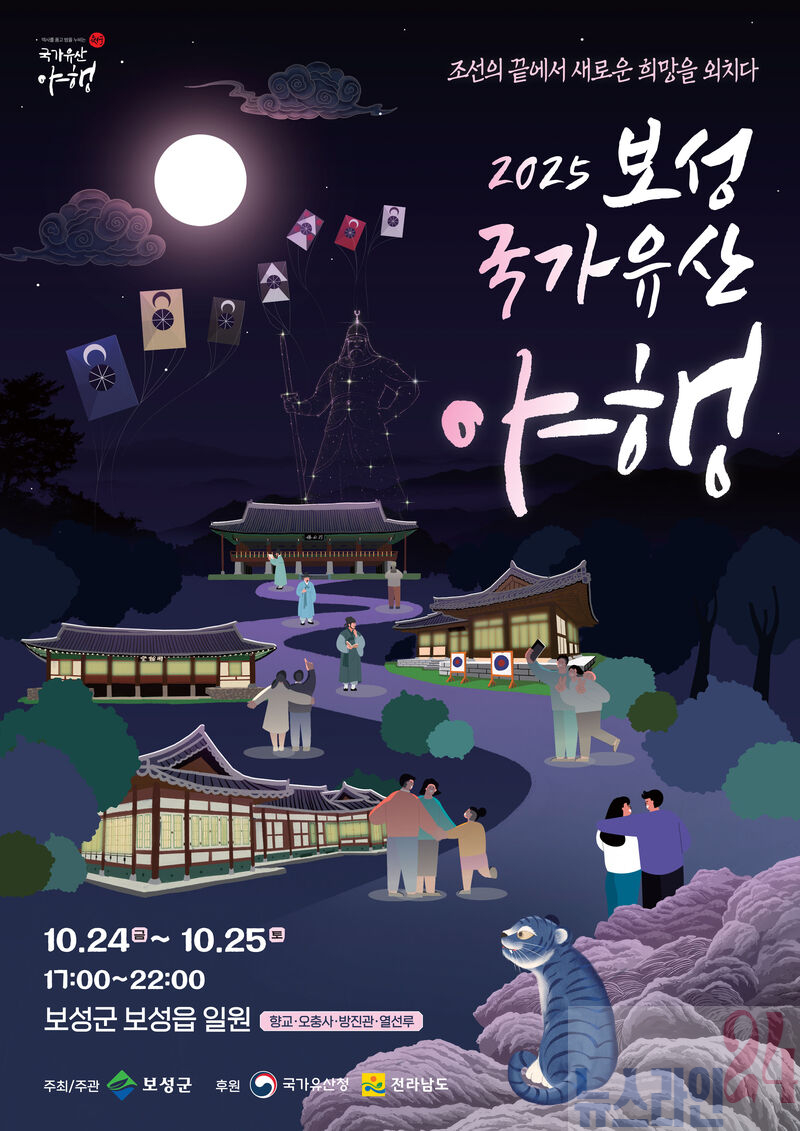 보성군(군수 김철우)은 오는 10월 24일과 25일 이틀간 오후 5시부터 10시까지 보성읍 일원에서 ‘2025 보성 국가유산 야행’을 개최한다고 밝혔다.