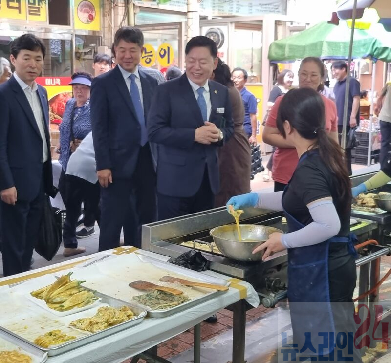 김 위원장은 장터 곳곳을 돌며 상인들과 직접 대화를 나누며 애로사항을 경청하고 격려의 말을 전했다. 그는 “우리 전통시장은 단순히 물건을 사고파는 곳이 아니라 세대와 세대를 이어주는 삶의 이야기와 정(情)이 담긴 공간”이라며 “경제가 함께 살아나기 위해서는 현장을 지키는 분들의 노력이 가장 소중하다”고 강조했다.