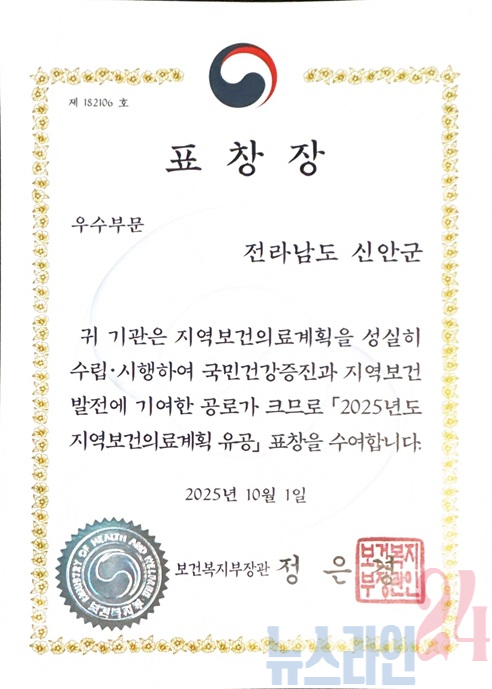신안군이 보건복지부 주최 ‘2025년 제8기 지역보건의료계획 성과대회’에서 보건복지부 장관 표창 2관왕을 차지하는 영예를 안았다.