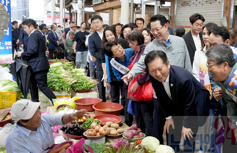 김영록 전남도지사 정청래 더불어민주당 대표와 구례5일장 방문