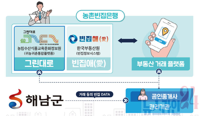 해남군이 빈집 정보를 투명하게 공개하고, 공인중개사와 연계해 빈집 매물 등록 및 거래를 체계적으로 지원하는‘농촌빈집은행 활성화 지원사업’을 본격 추진한다. 사업 대상은 정보 공개에 동의한 빈집이다.