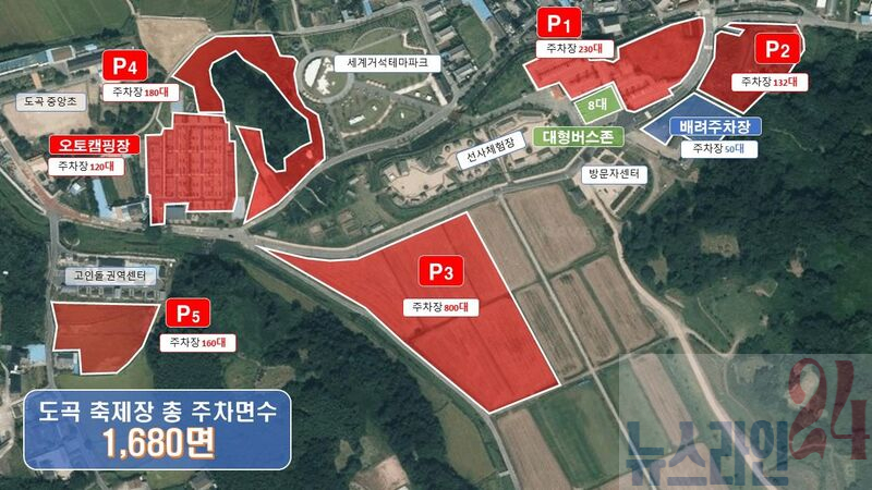교통 혼잡이 예상되는 주말(토, 일)을 기해 ▲도곡 게이트 인근 ↔ 양정마을 사거리 구간에서 차량을 통제하고, 8개 주차장에 총 1,980면의 주차 공간을 확보했다. 특히 도곡면 P2 주차장은 노약자, 장애인, 임산부 전용 배려 주차장으로 총 50대까지 수용할 수 있다.