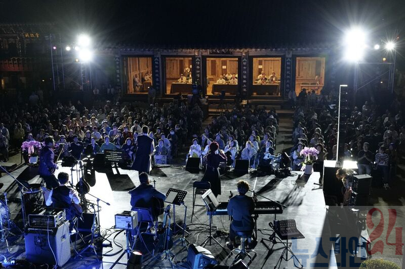 그리고 당일 저녁 19시부터 21시 30분까지 보제루, 각황전, 대웅전 앞 마당에서 “바람이 물을 스칠 때 ”이라는 주제로 화엄문화제의 하이라이트인 음악제가 조수빈 아나운서 사회로 문화제 열기를 한 것 끌어 올렸다.