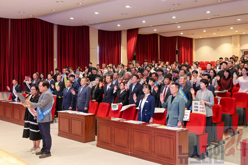 진도군은 최근, 진도군청 대회의실에서 진도고속철도추진위원회가 주관해 ‘진도 고속철도 국가계획 반영을 위한 범군민 결의대회’를 성황리에 개최했다고 밝혔다.