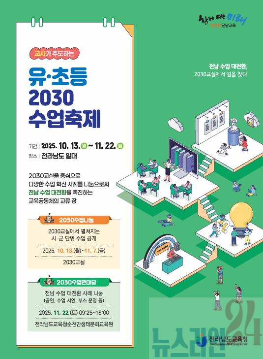 전라남도교육청(교육감 김대중)은 지난 13일부터 11월 29일까지 전남 일원에서 ‘유·초·중등 2030수업축제’를 개최한다.