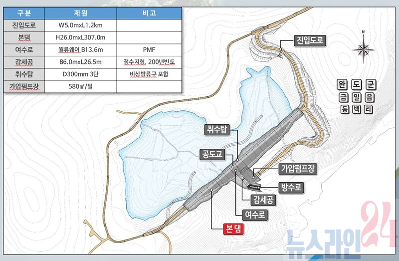 사업이 완료되면 기존의 척치, 용항제의 부족한 취수량에 대처하고 금일읍에 안정적인 생활용수를 공급할 수 있을 것으로 전망된다.