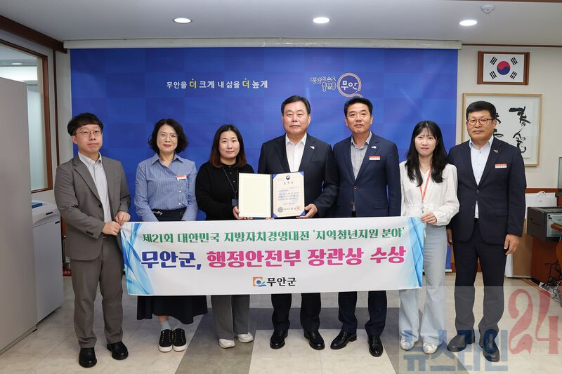 전남 무안군(군수 김산)은 행정안전부와 한국일보가 공동으로 주최한 「제21회 대한민국 지방자치경영대전」에서 지역청년 지원 분야 우수기관으로 선정되어 행정안전부 장관 표창을 수상했다.