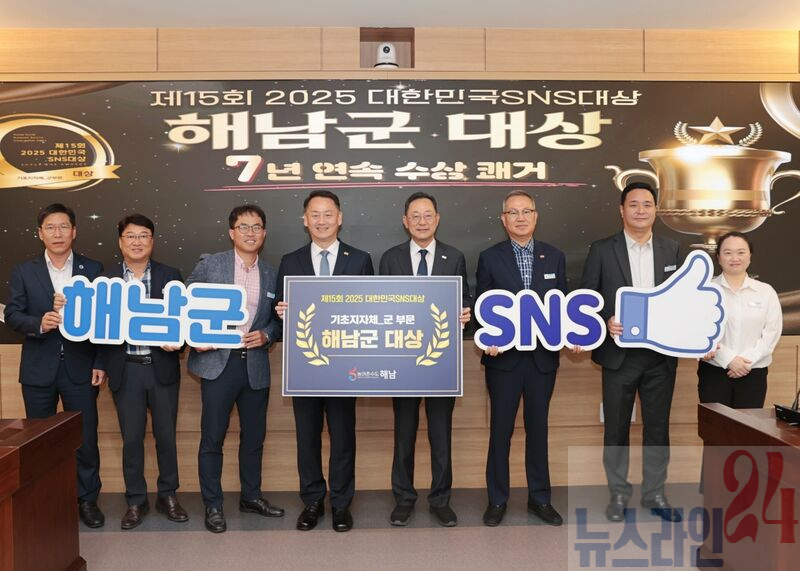 해남군이‘2025 대한민국 공공PR대상’에 이어‘제15회 2025 대한민국 SNS대상’에서 기초지자체(군) 부문 대상을 수상하며, SNS소통 선도 지자체로 자리매김했다.