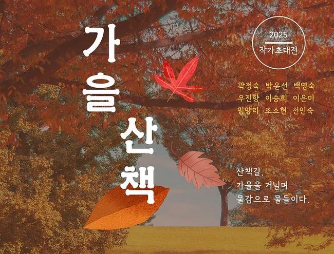 이승희 작가의 `동심 소환`은 유화 특유의 따뜻한 색감으로 가을의 감성과 순수한 동심을 표현했으며, 곽정숙 작가의 `늦가을 숲`은 깊어가는 가을 숲의 고요한 정취를 섬세한 붓터치로 담아냈다. 이은미 작가의 `가을은`은 시골 은행나무 길을 서정적으로 표현했다.