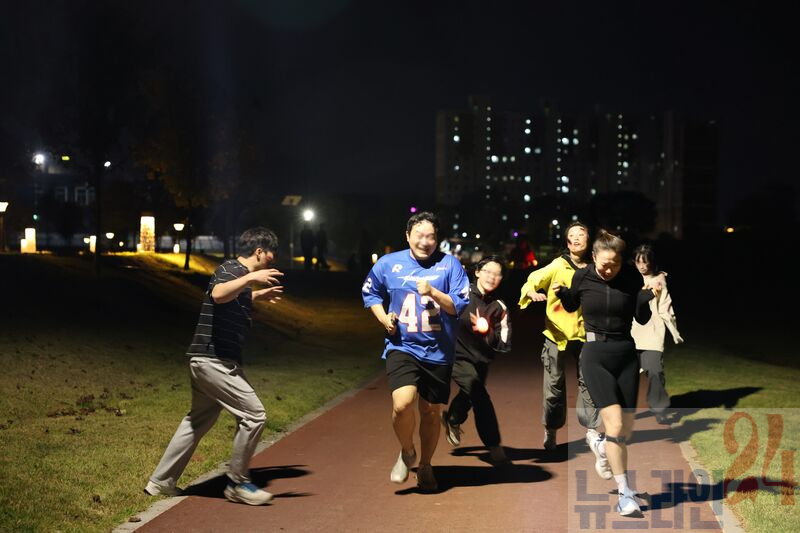 오후 7시, 신나는 전자음악(EDM)에 맞춰 준비 운동을 마친 500여 명의 참가자들은 신호와 함께 가족·친구 단위로 조를 나눠 출발했다. 황룡정원 음악분수 뒤편에서 시작해 황미르랜드를 한 바퀴 돌아 ‘튜브’ 장애물을 통과하고, 연꽃정원을 거쳐 다시 시작점으로 복귀하는 2.5km 코스였다.