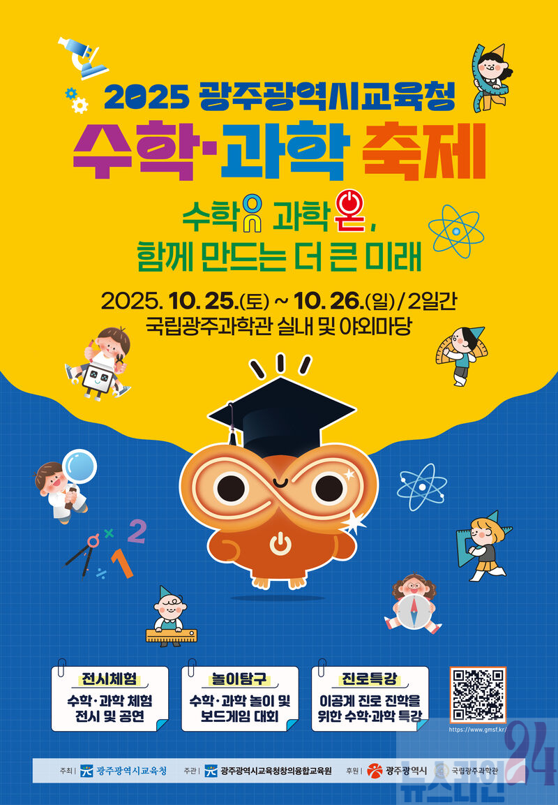 광주광역시교육청창의융합교육원(이하 광주창의융합교육원)은 오는 25~26일 오전 9시30분부터 오후 4시까지 국립광주과학관에서 ‘2025 광주 수학·과학 축제’를 개최한다.