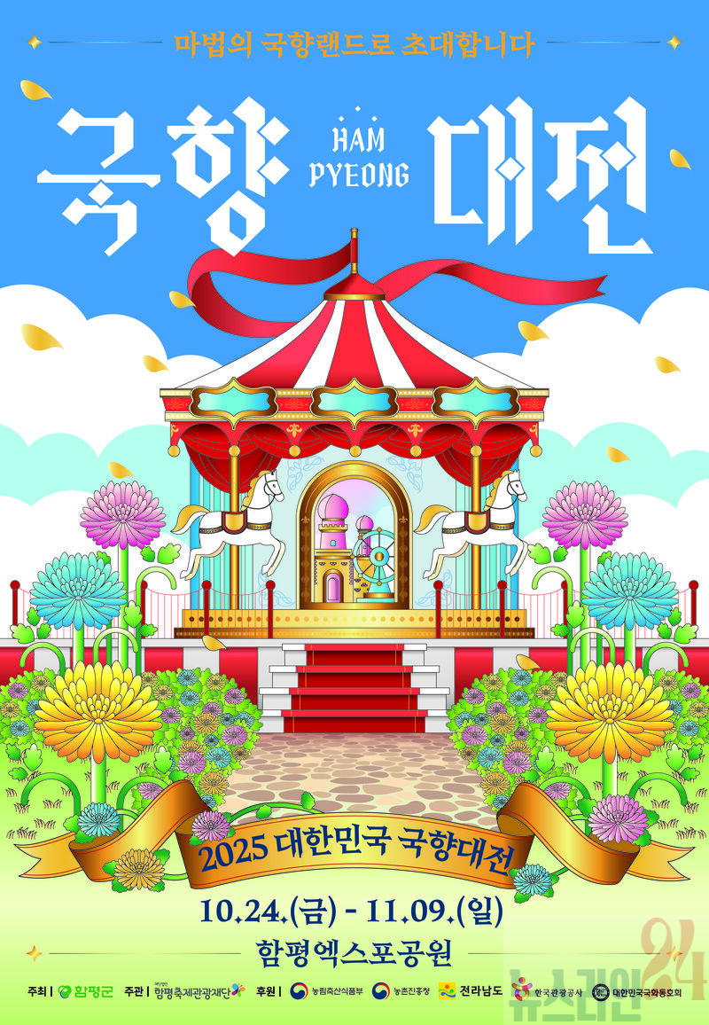 한편, 2025 대한민국 국향대전은 오는 10월 24일부터 11월 9일까지 17일간 함평엑스포공원 일원에서 ‘마법의 국향랜드’를 주제로 회전목마와 대관람차, 마법의 성 등 대형 국화조형물과 명품 국화분재 작품 전시, 브라스밴드 거리공연, 마법의 휴먼포토 등 다양하고 생동감 있는 전시·공연·체험프로그램으로 관람객을 맞이할 예정이다.